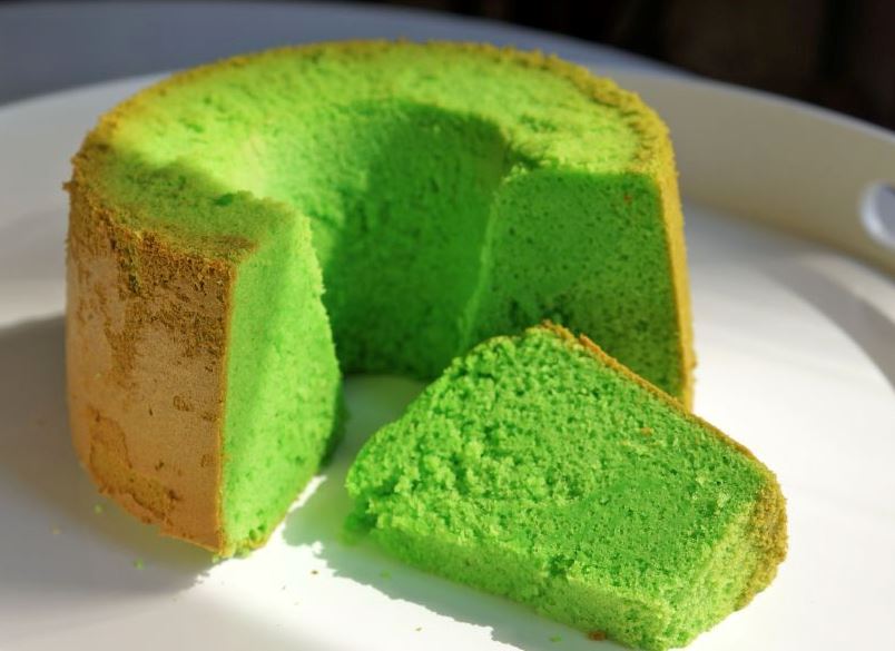 Pandan cake is a sponge cake, light and sweet, flavoured with the juice or extract of the pandan leaf. The dessert has roots in imperialism – flour and baked cakes brought over by European colonisers was fused with an aromatic native plant used to fragrant the rice and deserts of Southeast Asia.